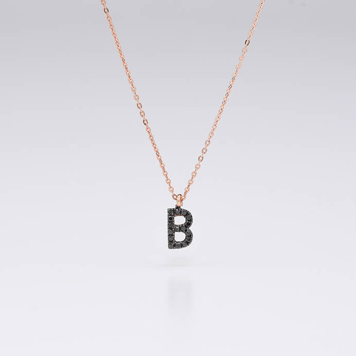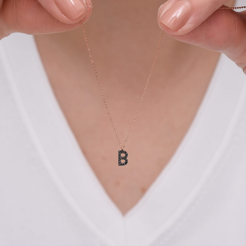 | B Harf Siyah Pırlanta ve Altın Kolye |