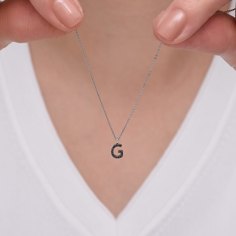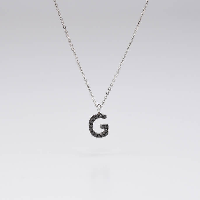 | G Harf Siyah Pırlanta ve Altın Kolye |